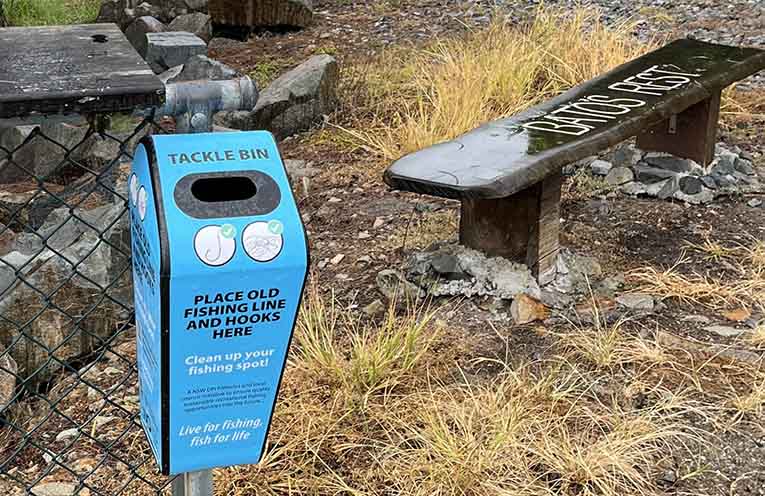 One of the waste bins for fishing tackle. A brush turkey wrapped in fishing line. WITH its vast array of rivers, lakes...