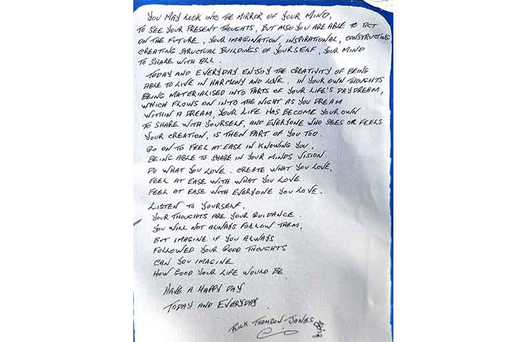“If I can give somebody some pleasure or happiness from seeing one of my installations and reading my letters, then it’s been worthwhile.”