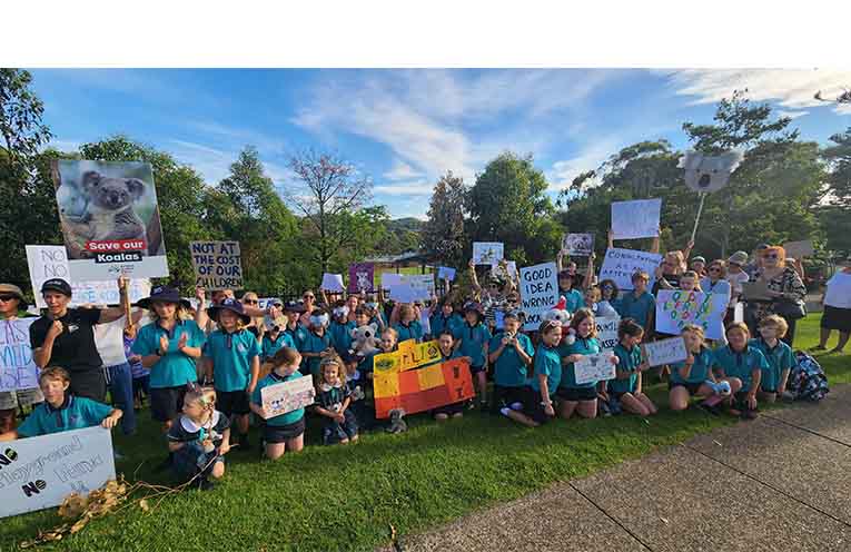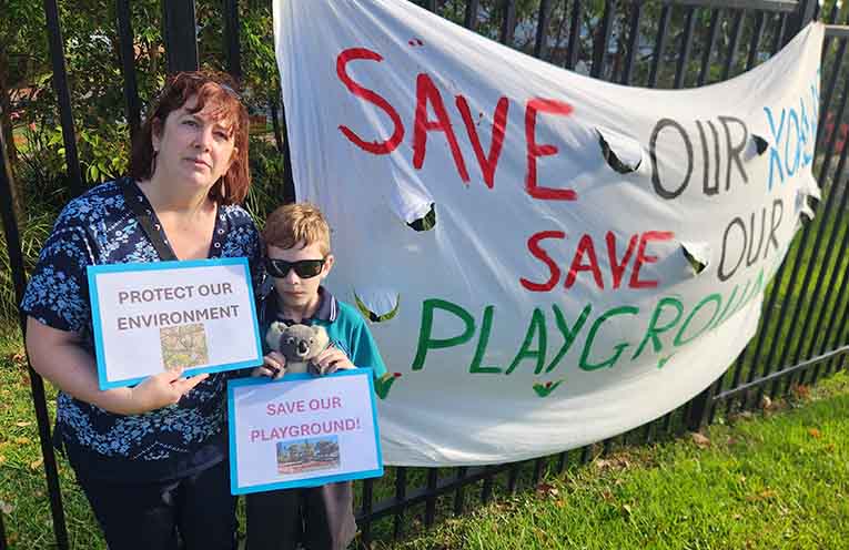 NEARLY 200 parents, grandparents, students and local residents gathered outside Tacking Point Public School (TPPS) this morning, chanting “save our playground” and “save the koalas” as opposition to a new $6.3 million preschool spilled into a big show of community force.