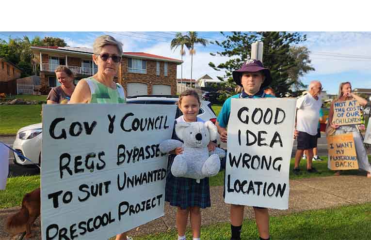 Waving banners along Bangalay Drive, the protestors stressed they are not against early education – but against what they describe as the wrong site.