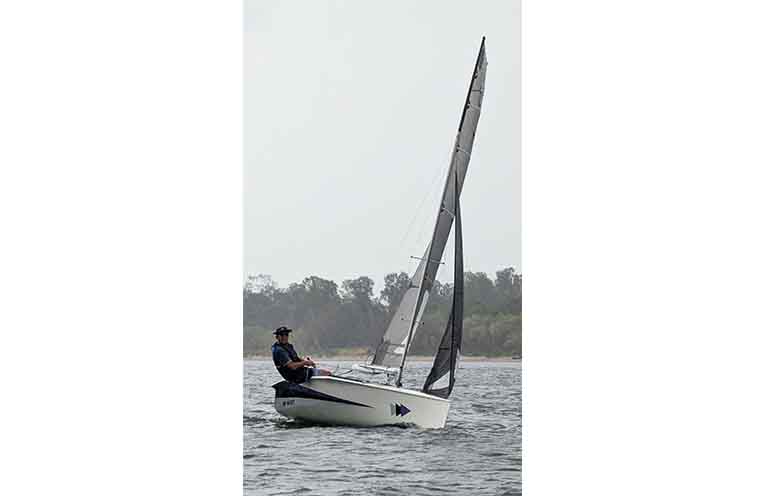 SUNDAY was supposed to be race 3 of the handicap start series, but with low numbers due to the overcast weather with showers & light breezes, it was decided to hold race 3 of the summer series at the Port Macquarie Sailing Club. The day certainly was a challenge with some showers, a patchy Southeast breeze and a quick run out tide. Steve Couch set a shortish course, all buoys to Port, with a work to buoy A just down past Girraween Road, then pretty much a run past buoy B off King Point to buoy C across the river from the McInherney Park boat ramp, a reach across to buoy D off the Rowing Club, then a work back to the start-finish line complete the lap. The catamaran did 3 laps, as did the monohulls.