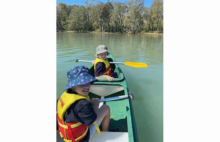 William and Toby Anderson canoeing near Lake Cathie.
